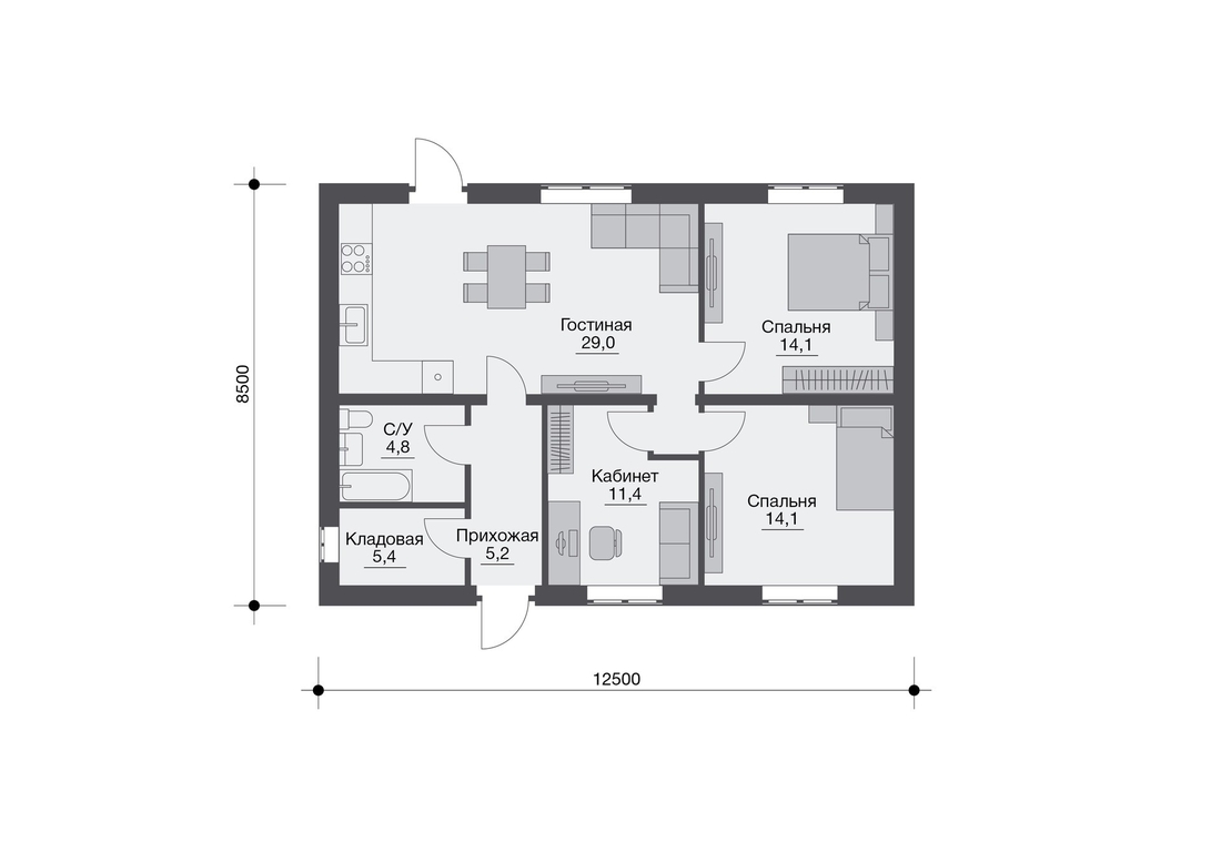 ПЛОЩАДЬ ДОМА: 84м2